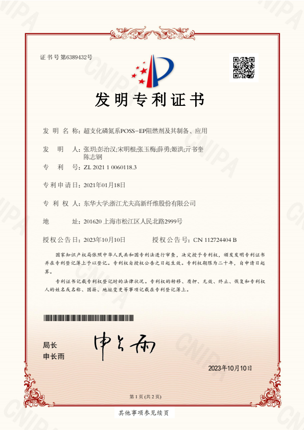 發(fā)明專利證書一種紡絲噴油嘴及其操作方法