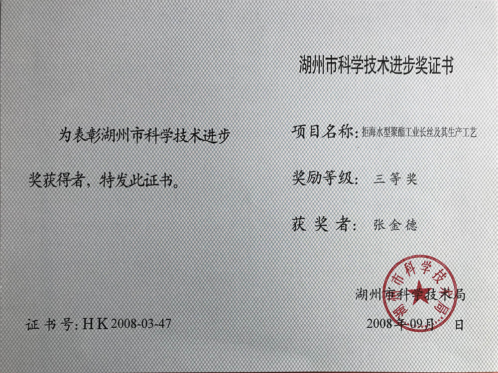 2008湖州市科技進(jìn)步獎(jiǎng)三等獎(jiǎng)-張金德